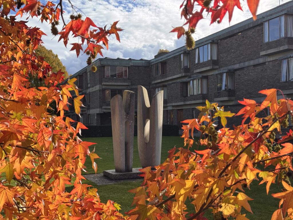 The grounds were designed in 1959 by the modernist landscape architect, Sheila Haywood (1911-1993). For further information about her work, you can read her biography, written by Paula, online. For those who would like to know more about the history, Portrait of a Landscape is a 200 page fully illustrated book with 205 photos which chronicles the development of the grounds and gardens since 1959 to the present day. In landscape format, it is on sale for £20, also available at the Porter’s Lodge and to buy online.