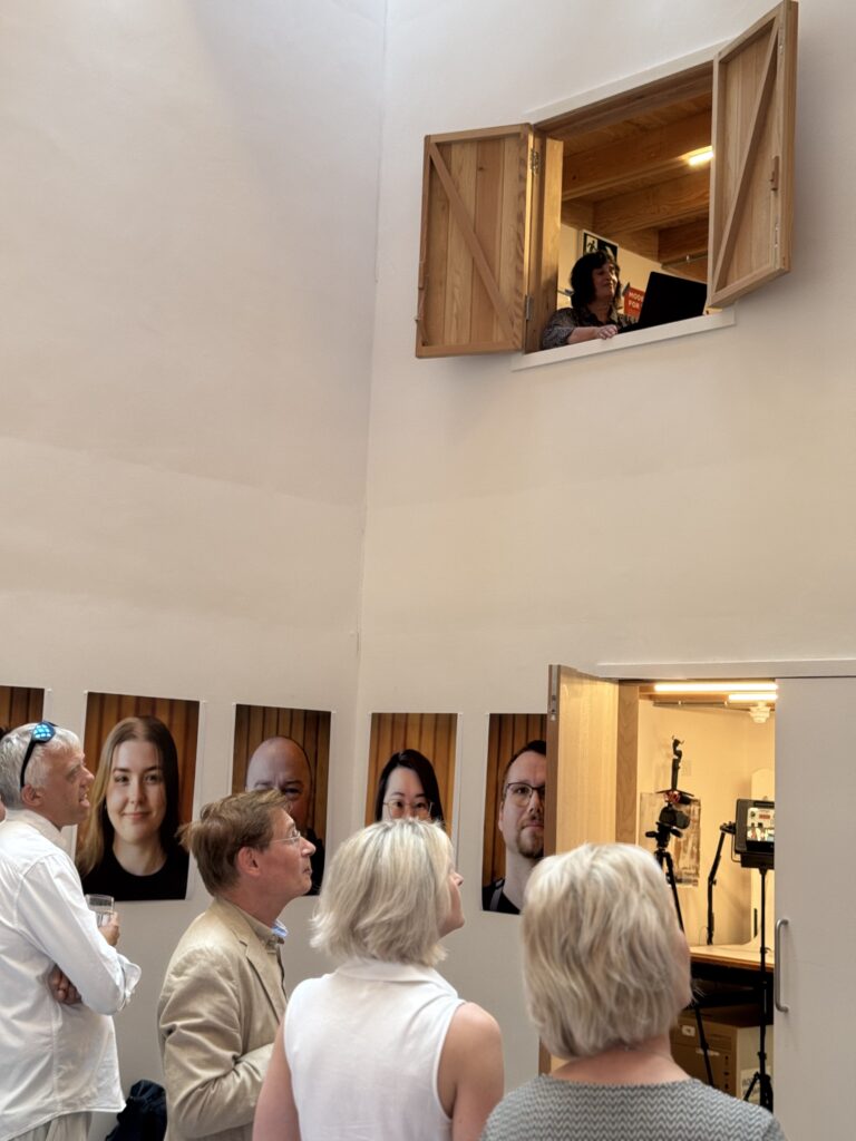 The exhibition opened with a drinks reception at the Bill Brown Creative Workshops, at which Fellow and award-winning poet Bhanu Kapil performed a new poem written especially to mark the exhibition. It runs until July 11th. Members of the Churchill College community who have been inducted into the BBCW can access the building using their fob, and other members (and the wider public) can view the portraits within the BBCW by emailing [email protected] and making an appointment.