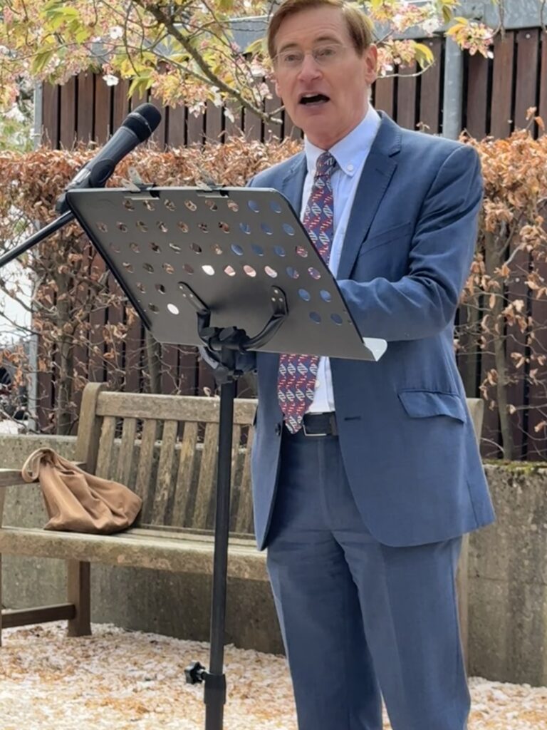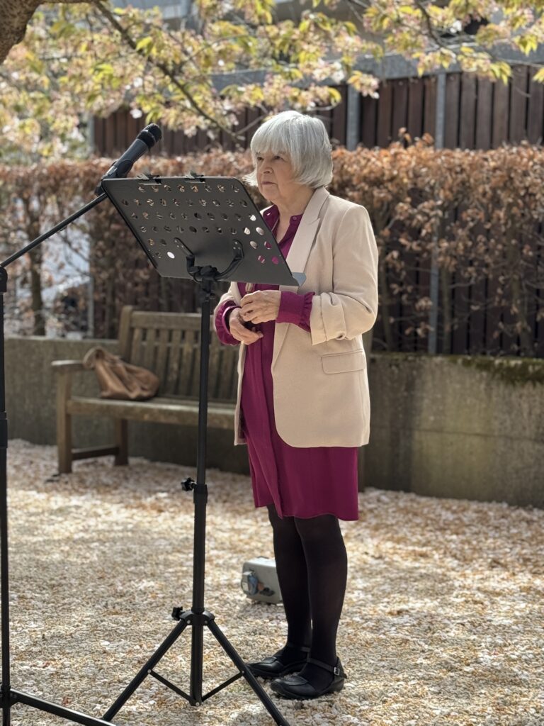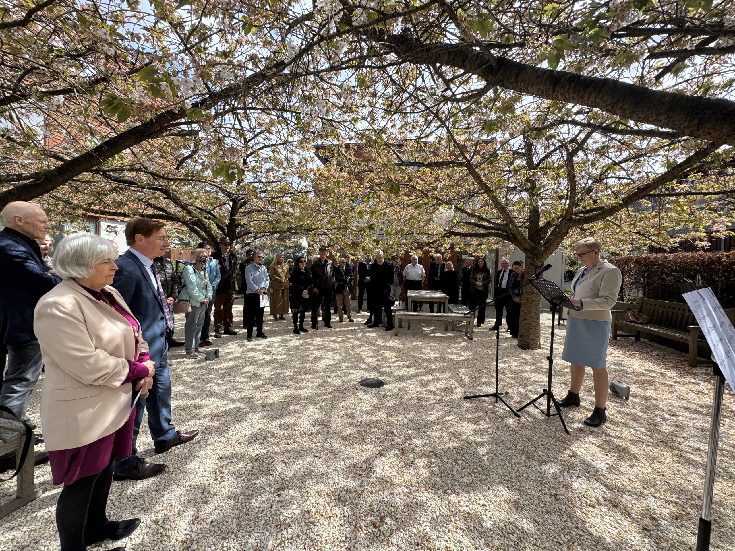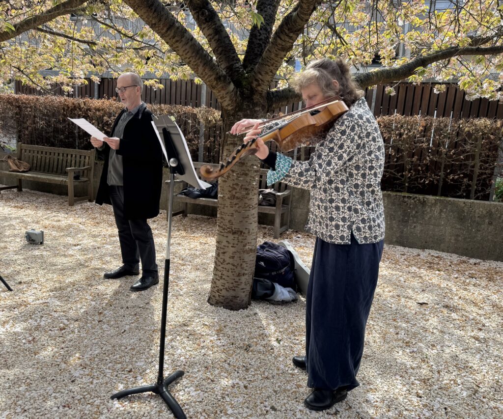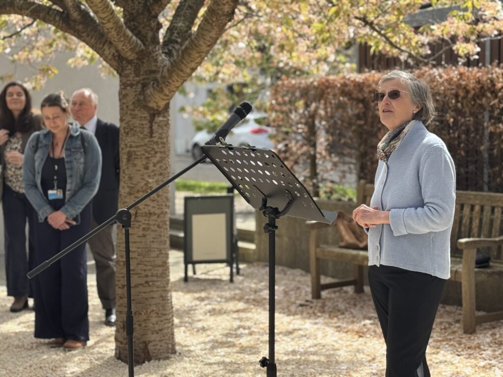 Members of the Boyd family, along with Fellows, former staff and alumni, gathered for the dedications ceremony. Guests heard personal reflections from Professor Mark Goldie, Professor Alison Finch, and Lady Julia Boyd, recalling Sir John’s contribution to the College and the wider community. The event also featured an evocative musical performance by alumna Rachel Stott (U87), who performed her original composition Cherry Blossom Wand.